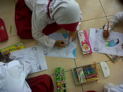 seperti biasanya ada mewarnai, menggambar, mendongeng dan kegiatan-kegiatan